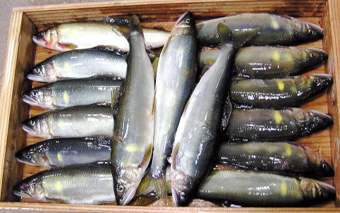 京都市民の憩いの場でもある賀茂川(鴨川)、その河川の上流の渓流域には琵琶湖産の放流鮎、下流域には大阪湾海産天然遡上の鮎と全国的にも大変珍しい環境があります。友釣り発祥の地とも言われている古都の味をお楽しみください。軽く炙って酒の肴に、湯豆腐の出汁や、熱燗に入れたりと酒飲みには堪らない一品です。