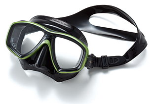 ダイビング用のマスクは一般的に一眼タイプ・二眼タイプに別れます。その使い別けは主に度付レンズを着用するかどうか。一部のメーカーでは一眼タイプでも度付レンズ対応の物もあります。水面・水中での紫外線対策としてUVレンズのものや、シリコンが透明、ブラックなど様々です。コンタクトレンズでもダイビングは可能ですが自身のストレス状況により使い分けます。近視や遠視、老眼レンズなどの対応も可能です。