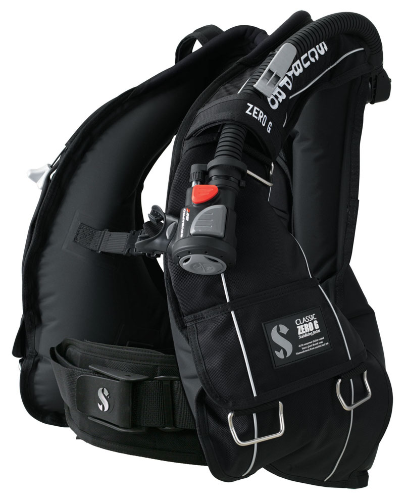 クラシックZERO G. BCは収納力に優れたシックなB.C.です。大容量のベルクロ式メインポケットとファスナー式チェストポケットのコンビはスキューバプロB.C.内でもトップクラス。シックなデザインは男性女性を問いません。