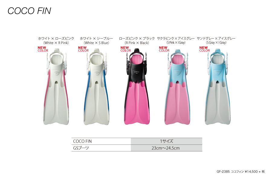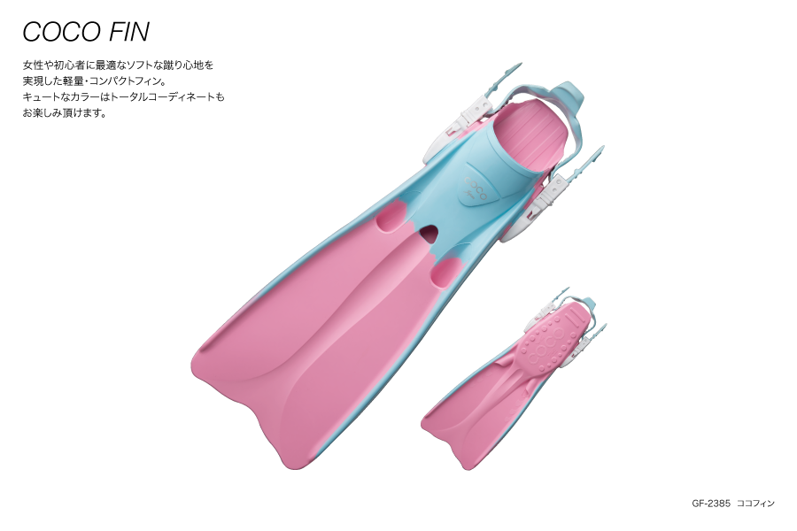 女性や初心者に最適なソフトな蹴り心地を実現した軽量・コンパクトフィン。 キュートなカラーはトータルコーディネートもお楽しみいただけます。