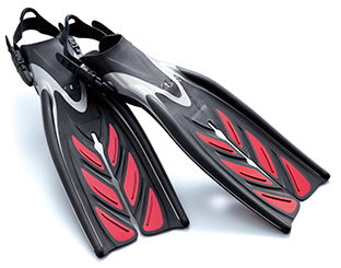 SF15はフィンのサイドリブに硬度の違う素材を1枚追加して”コシ”を与えました。少ない力でより多くのスピードとパワーが得られる事で、更に多くのダイバーの要求に応えられるようになりました。