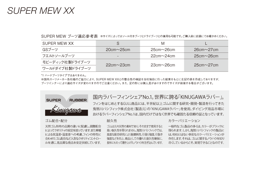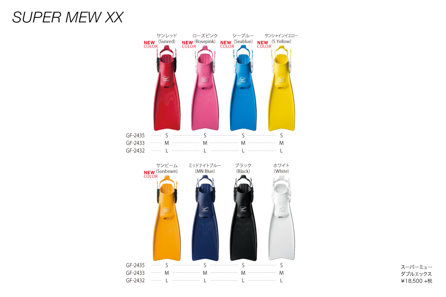 定評のあるSUPERMEWをストラップフィンタイプにし、さらに運動性能もグレードアップ。あらゆるダイバーが快適に使用できるよにあえて全長・ブレード長を短くすることで、取り回しが容易になりながらもスーパーミュー同様、抜群の推進力を発揮します。ウエットスーツ、ドライスーツどちらもご使用いただけます。