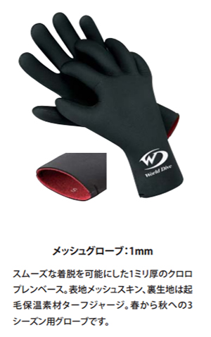 スムーズな着脱を可能にした1ミリ厚のクロロプレンベース。表地メッシュスキン、裏生地は起毛保温素材ターフジャージ。春から秋への3シーズングローブです。