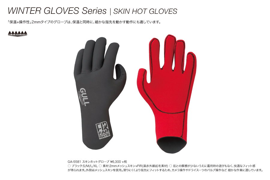 保温重視の3mmタイプのグローブは、水温の低い環境下でも高い保温効果を発揮します。