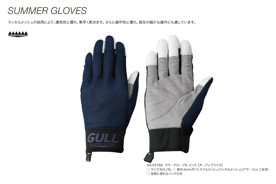 ラッセルメッシュの採用により、通気性にに優れ、素早く乾きます。さらに操作性に優れ、指先の細かな操作にも適しています。