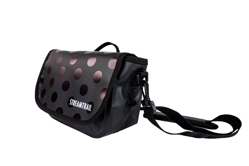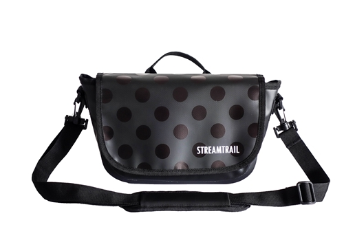 ■前面のフロントフラップ(開口部)に同色のドット模様がプリントされているデザインです。ロゴマークは控えめです。