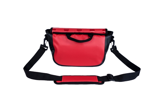 ■スマートフォンや定期など取り出す頻度が多いものは、便利なフロント部に取り付けられたボディポケットに収納。フロントフラップを下げることで上からの雨などを防ぎます。